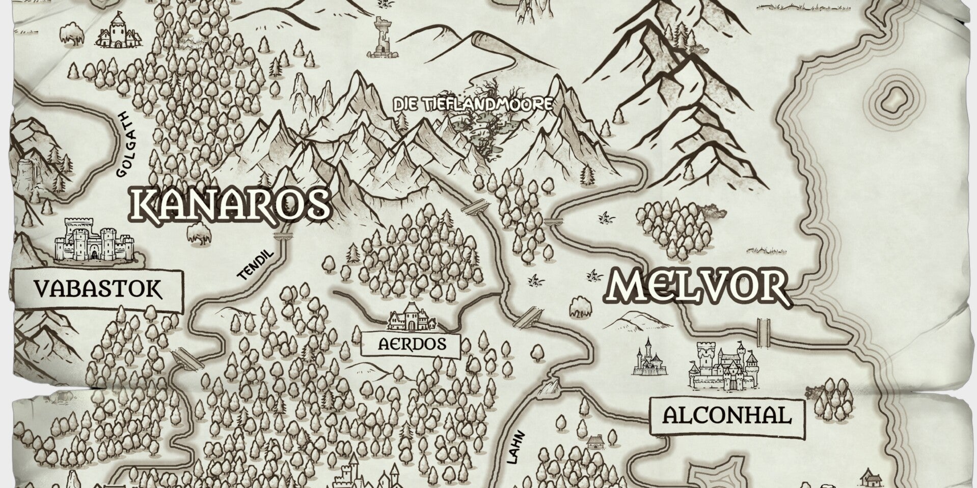 Melvor hingegen erlangte mit seinen fruchtbaren Feldern einst Reichtum und Fülle, bis Kriege und Gier den Wohlstands verzehrten.